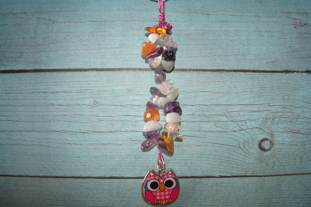 Kristali v obesku so ametist, kamena strela, karneol, aventurin.