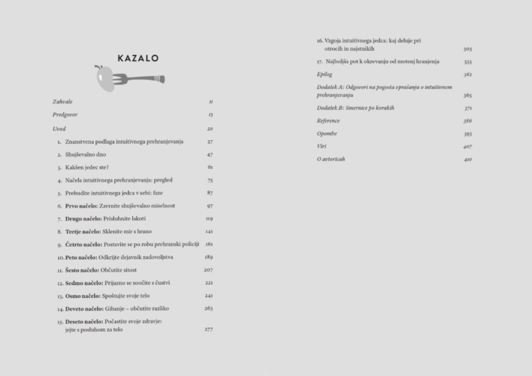 Avtorici nas v njej naučita, kako se ponovno povežemo s svojo notranjo modrostjo – kako se odučimo vsega, kar so nam kdaj govorili o štetju kalorij in drugih vidikih shujševalne kulture.