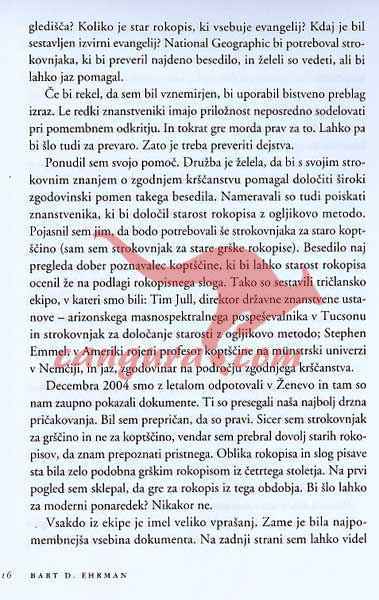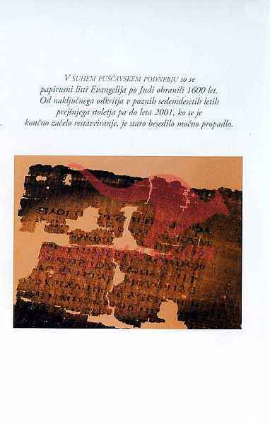 Od peska egiptovske puščave do švicarskega alpskega podnebja, do trezorja hickvilske newyorške banke in zamrzovalnika v Akronu v Ohiu – nova knjiga National Geographica na sledi neverjetnega 1700-letnega popotovanja dragocenega papirusnega rokopisa oziroma kodeksa, ki vsebuje edino znano ohranjeno kopijo Evangelija po Judi.