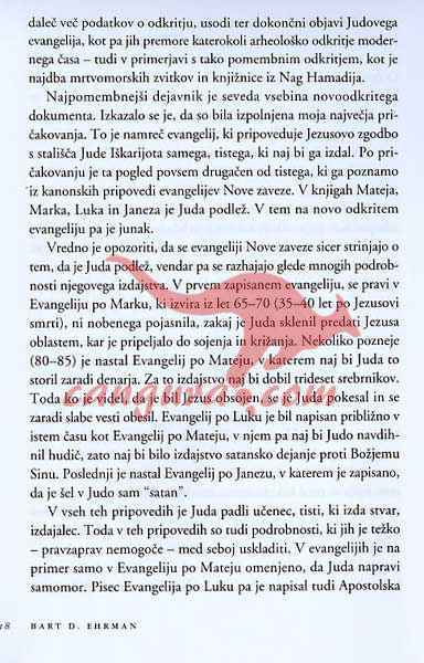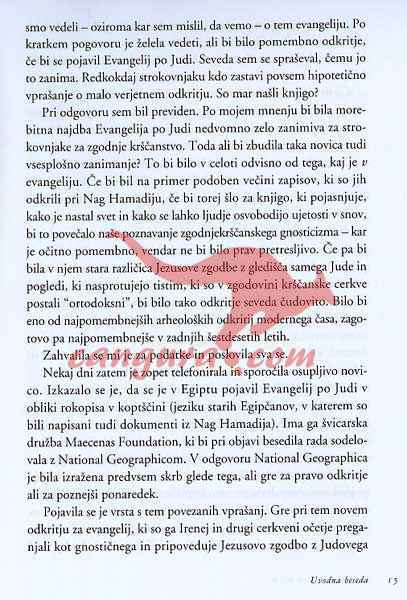»Z vztrajnostjo vrhunskega raziskovalnega novinarja se je Krosney ukvarjal z vsakim vidikom tega odkritja in zahtevami v zvezi z najdbo. Z neprekosljivo spretnostjo pri sestavljanju nepovezanih podatkov, nam predstavlja množico podrobnosti, ki bi bile brez njegovega prizadevanja za vedno izgubljene. V tej knjigi je veliko več podatkov o odkritju, usodi in končni objavi Evangelija po Judi, kakor pa jih imamo o kateremkoli arheološkem odkritju sodobnosti – tudi o tako pomembnih najdbah kot so mrtvomorski zvitki in knjižnica iz Nag Hamadija,« je v predgovoru zapisal Bart. D. Ehrman, ki je profesor religiologije na univerzi Severne Karoline v Chapel Hillu in avtor knjižne uspešnice Napačno navajanje Jezusa: Zgodba o tem, kdo je spremenil Sveto pismo in zakaj.