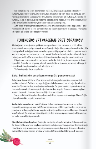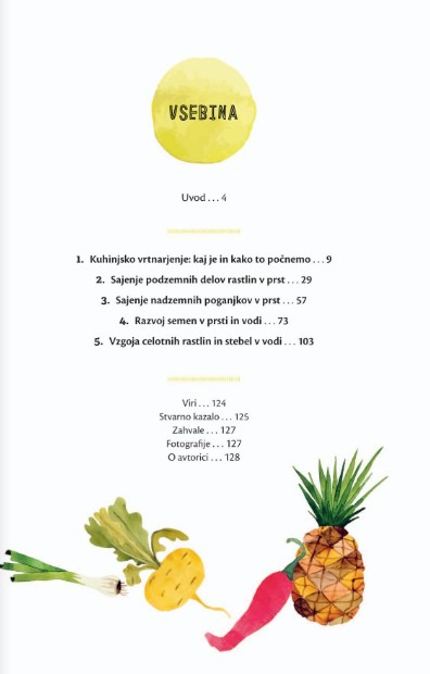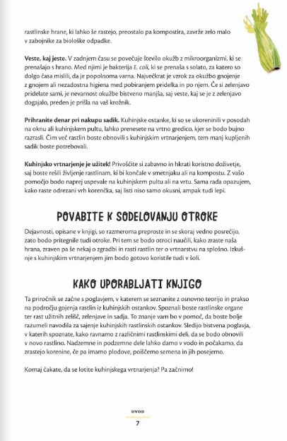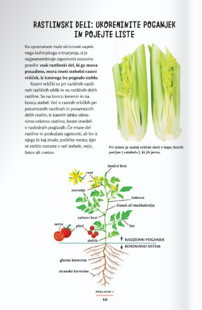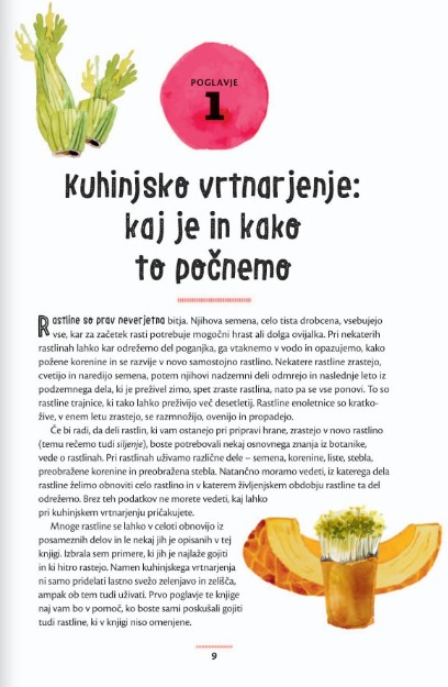 Pri pripravi hrane navadno zavržemo rastlinske dele, ki bi jih pravzaprav še lahko uporabili. Ostanke rastlin od priprave juhe ali solate lahko vržemo na kompost, lahko pa jih posadimo in iz njih naredimo cel zelenjavni vrt. S pomočjo knjige Naj zraste spet vam bo zagotovo uspelo!