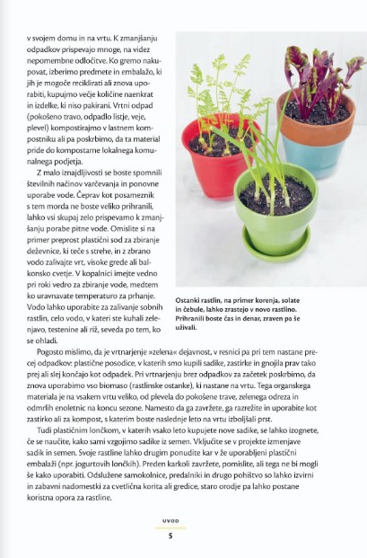 »Ob pomoči novega priročnika lahko temu naredite konec in poskrbite, da bodo rastlinski ostanki v kuhinji zaživeli novo življenje, se razraščali in razmnoževali. Imeli boste svežo zelenjavo in zelišča, prihranili boste čas in denar, pa še količina bioloških kuhinjskih odpadkov se bo občutno zmanjšala. Poskusite, ne bo vam žal!« – Gloss