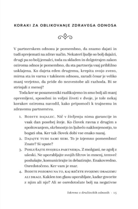 Temeljni gradniki vseh odnosov, tudi družinskih, so pogovor, razumevanje slišanega in medsebojno spoštovanje. Seveda je iskanje skupnega imenovalca vedno polno pregovarjanj, nesporazumov in čustev družinskih članov, toda s pomočjo ljubezni, pripadnosti ter občutka varnosti znotraj družinske celice je vse te različnosti možno urediti.