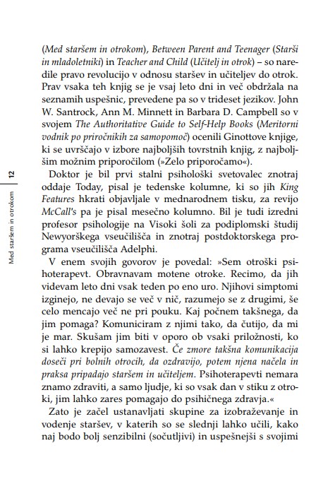 Odlična knjiga priznanega otroškega psihologa in psihoterapevta H. G. Ginotta.