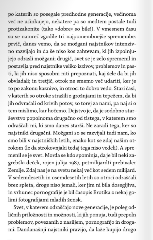»Najstništvo je res zelo zahtevno poglavje človekovega razvoja tako za otroke kakor tudi starše. Naporno, ne samo zahtevno. To je tudi čas, ko starši delamo več napak, kot si mislimo, in več kot v otrokovih zgodnejših letih. (…) Knjiga me je navdušila s praktičnimi nasveti nekoga, ki ima za sabo kilometre pogovorov, svetovanja, reševanja težav konkretnih najstnikov. Ni le teoretično razpredanje, je tudi praktičen vpogled v pogoste in manj pogoste težave mladostnikov.« – Iz spremne besede Jane Zirkelbach, urednice revije za najstnike Pil in dolgoletne šolske psihologinje