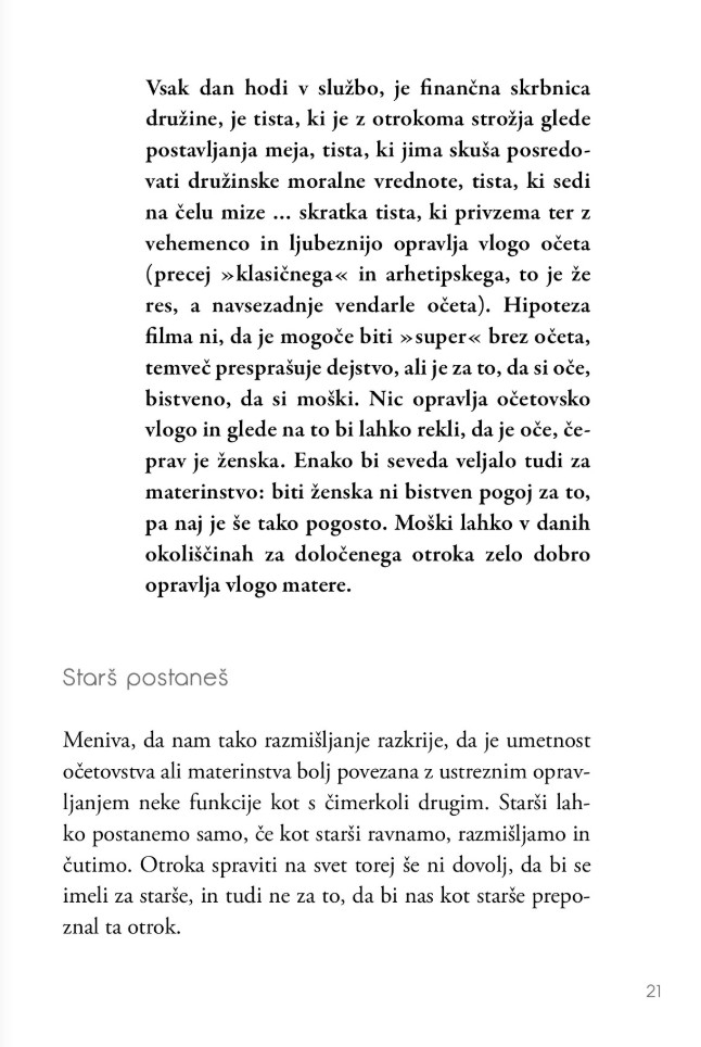 Kaj pomeni starševstvo? Zakaj se odločimo zanj in kako smo lahko v njem resnično uspešni? Predvsem pa: kdaj lahko rečemo, da je pot vzgoje lastnih otrok končana?