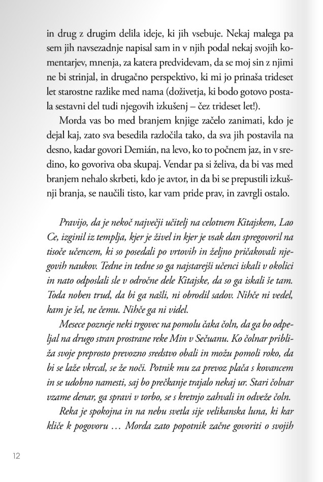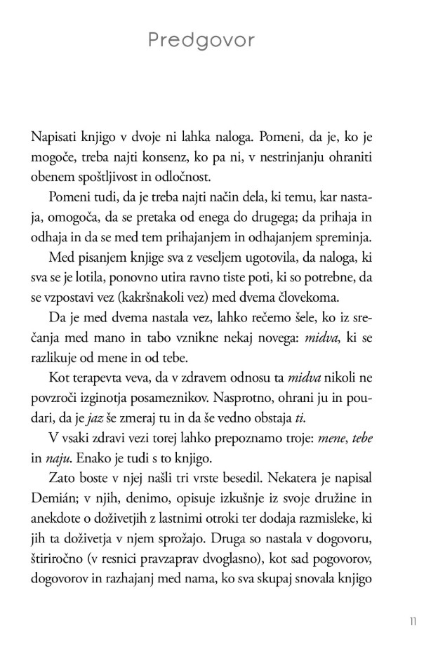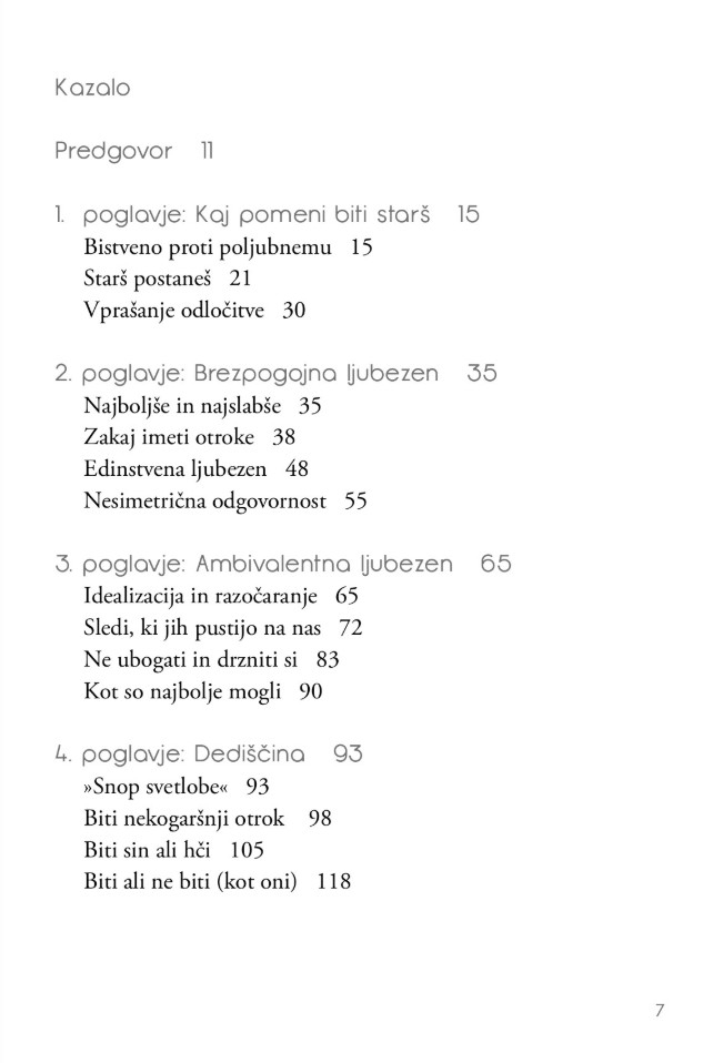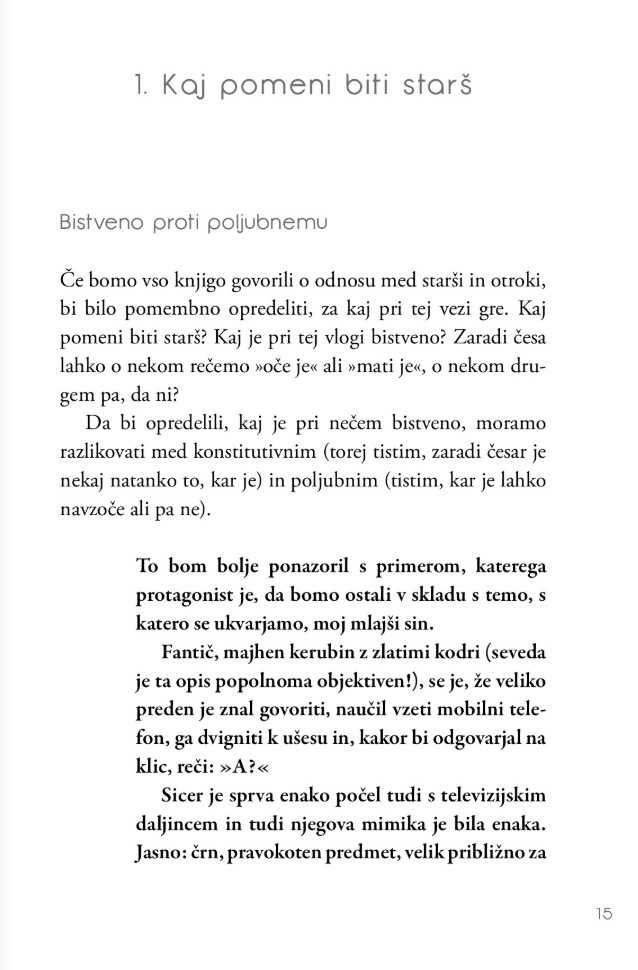 Na ta in številna druga zapletena vprašanja, ki zadevajo tako zadovoljstvo kot težave z vzgojo in prenašanjem podedovanih vzorcev iz roda v rod – vsega, kar nas na poti starševstva čaka – avtorja odgovarjata tako s humorjem kot znanjem ter pri tem črpata iz bogatih osebnih in profesionalnih izkušenj.