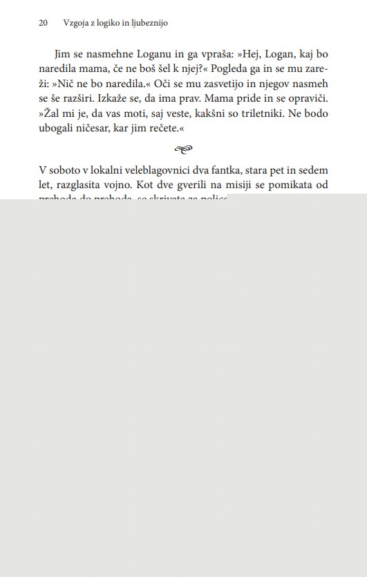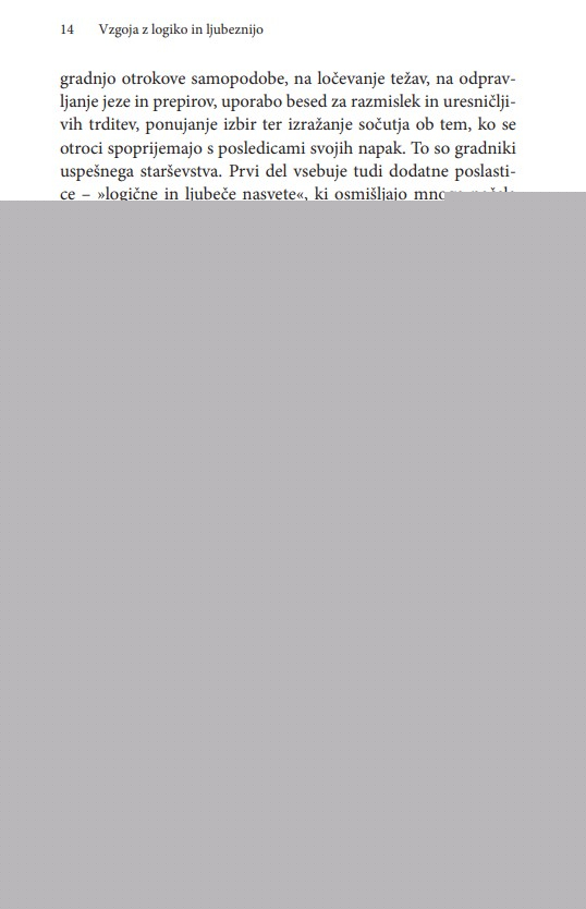 Zakaj izraza logika in ljubezen? Uspešno starševstvo se osredotoča na ljubezen: ljubezen, ki ni permisivna, ljubezen, ki ne prenaša nespoštovanja, a tudi ljubezen, ki je dovolj močna, da otroci ob njej lahko delajo napake ter doživljajo njihove posledice. Večina napak ima logične posledice. In te otroke učijo lekcij, ki preobražajo mišljenje, kadar jih pospremimo z vživljanjem – z našim sočutnim razumevanjem otrokovega razočaranja, frustracij, bolečine.