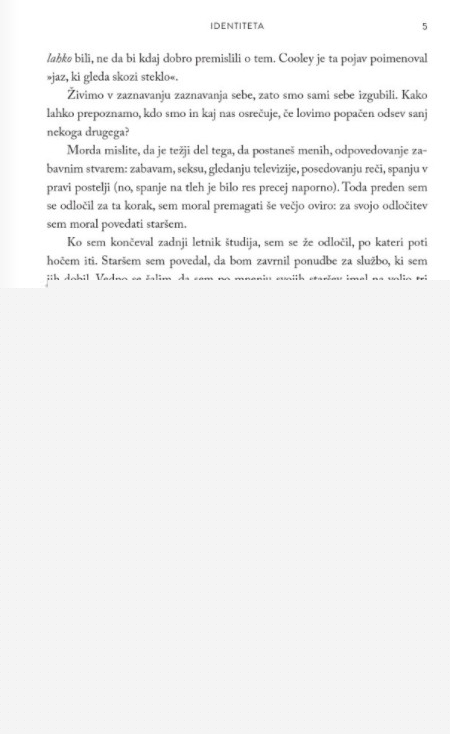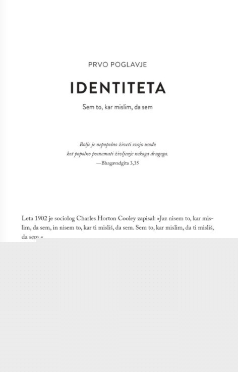 »Jay Shetty vam korak za korakom pokaže, kako poiskati svojo moč, tako da se namesto na svojo podobo začnete osredotočati na samopodobo. Ta knjiga vas bo osvobodila družbenega pogojevanja in vam pomagala, da boste postali arhitekt svojega življenja.« Dr. Deepak Chopra