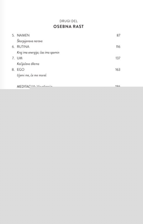 V tej iskreni, navdihujoči in pronicljivi knjigi se Jay Shetty osredotoča na ovire, na katere pogosto naletimo na poti do uresničevanja svojega potenciala, in nas opremi z orodji, s pomočjo katerih premagamo negativnost, tesnobo in pretirano razmišljanje.