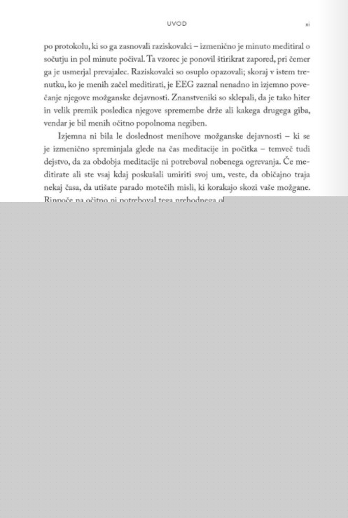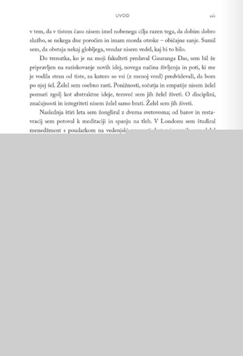 »Jay Shetty ima redek dar, da se potopi v svet brezčasnih modrosti in jih posodobi, tako da vsakdanje trenutke napolni s smislom in namenom. Utrinke teh modrosti deli na družbenih omrežjih z milijoni ljudi, zdaj pa jih je zbral v knjigi, ki vam bo spremenila življenje. Preberite jo, da si odprete um, povzdignete srce, na novo opredelite uspeh in prepoznate svoje poslanstvo.« Arianna Huffington