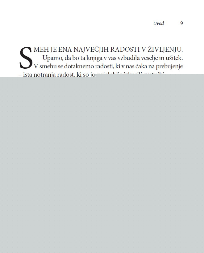 Vsebina te knjige je hkrati igriva in resna. Temeljno sporočilo pa je, da je radost vselej v nas. Tam jo moramo iskati in jo vselej deliti z drugimi.