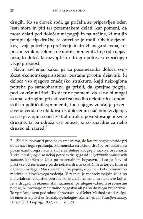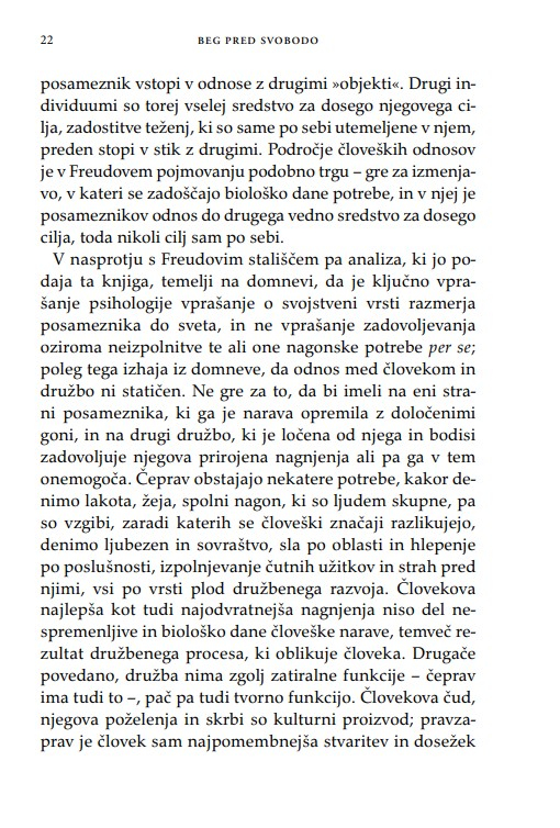 Fromm lucidno razloži, zakaj ljudje vidijo svojo varnost in rešitev v avtoritarnih družbenih ureditvah, njegove ugotovitve pa veljajo enako za čas, v katerem je knjiga nastala, kot za sedanjega.