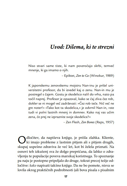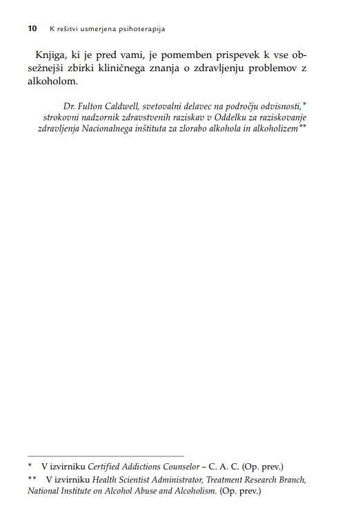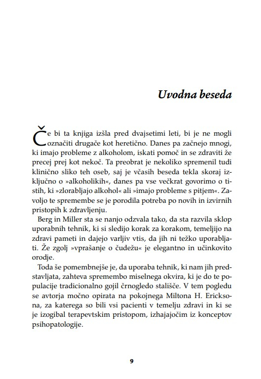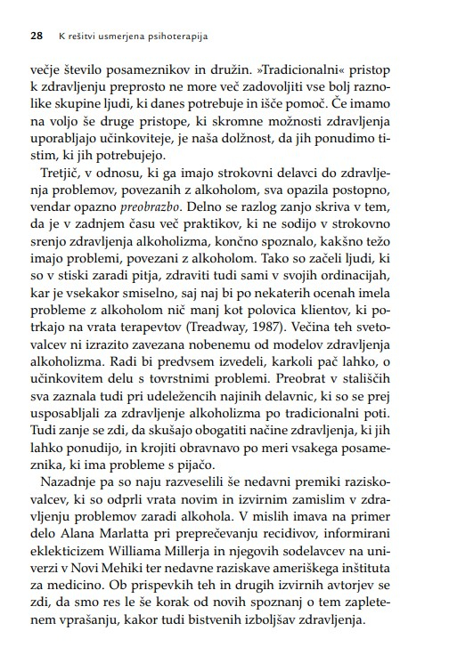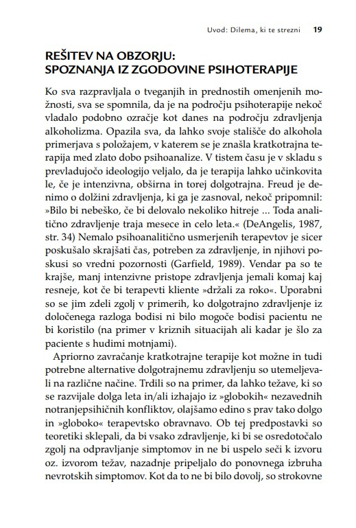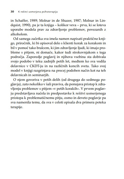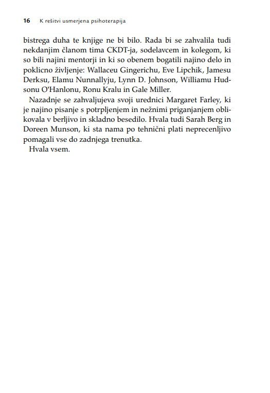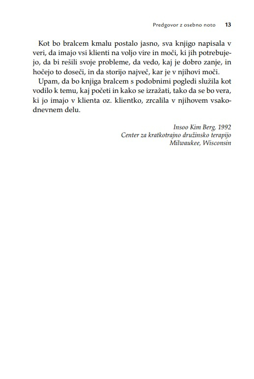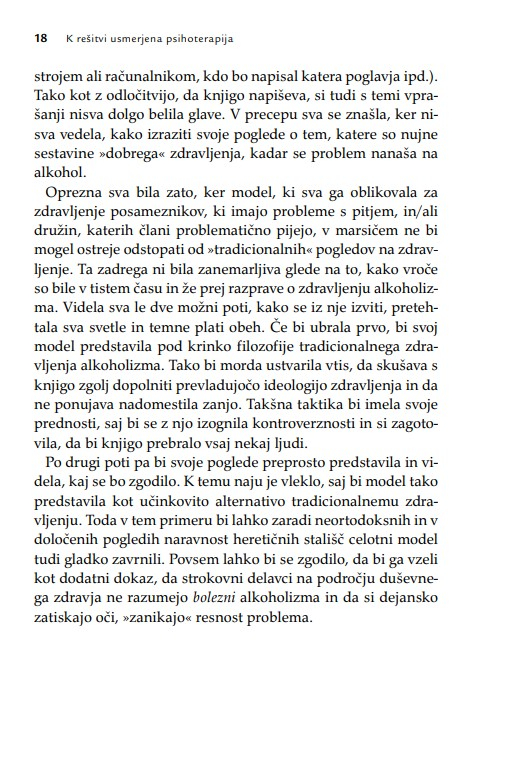 Zaradi široke uporabnosti knjiga ne bo dobrodošla le psihoterapevtom, psihologom, svetovalcem in coachem, temveč tudi vsem, ki poskušajo pomagati s pogovorom. Terapevtske tehnike, ki so predstavljene z obilico kliničnih primerov, so uporabne v različnih kontekstih psihosocialne pomoči.