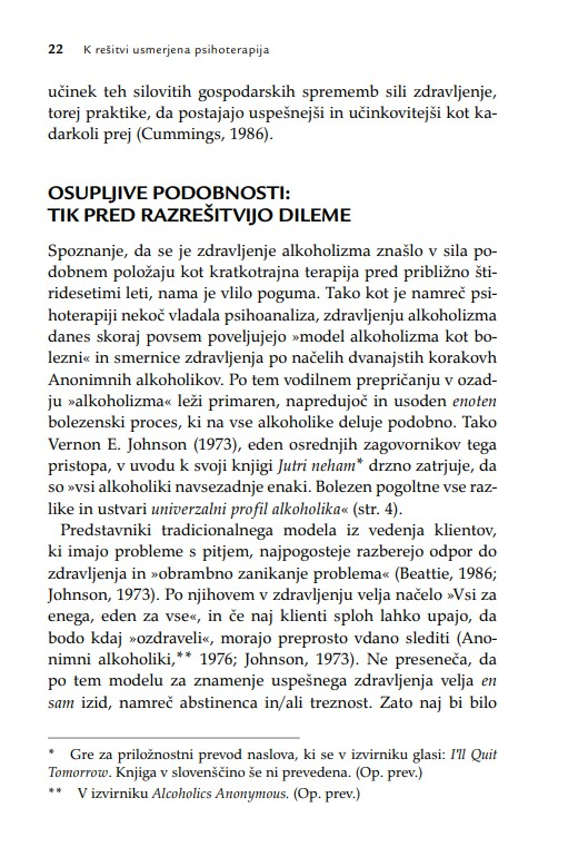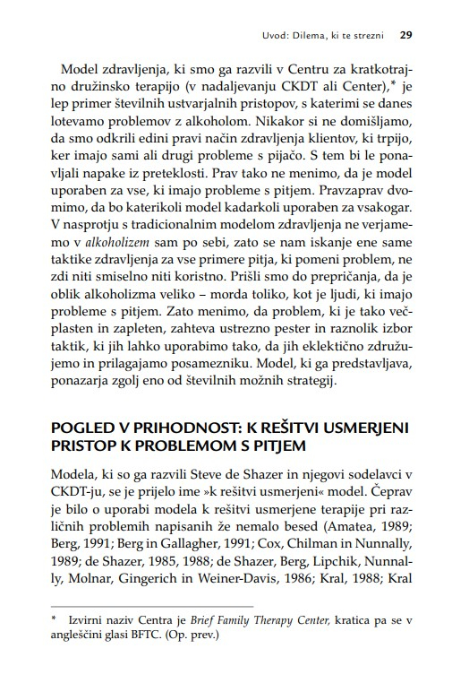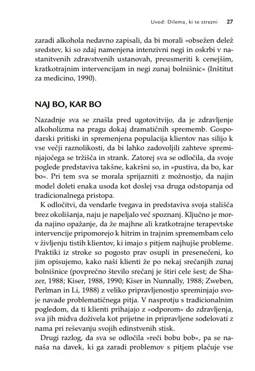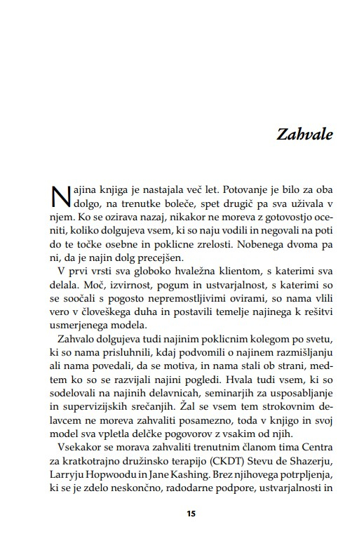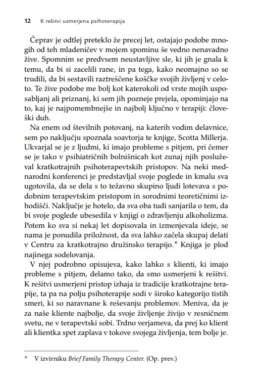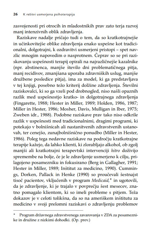 Namesto stare predstave, da je terapevt podoben junaku na belem konju, ki rešuje svoje kliente, se kot glavni heroj v doseganju terapevtskih sprememb pokaže klient. Zato je knjiga lahko spodbudno branje tudi za (potencialne) kliente oz. uporabnike terapevtskih storitev.