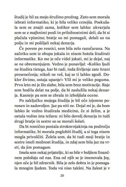 Blessing Okoedion piše o svojem življenju v Nigeriji, otroštvu, ljubeči družini, očetu, ki se je zavedal pomena izobrazbe in je poskrbel, da so se izšolali vsi njegovi otroci. Življenje na vasi je bilo mirno, varno, vsi so si med seboj pomagali.