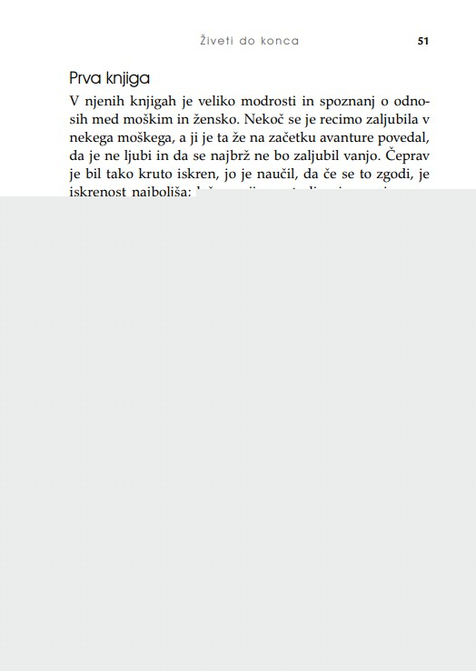 »Ženske se največ naučijo iz življenja drugih žensk, pravi Irena Štaudohar v svoji knjigi. A iz zgodb o življenju žensk, ki jih opisuje v njej, bi se morali učiti tudi moški. V bistvu je to knjiga, ki bi jo morali moški brati veliko bolj kot ženske. Ker bi morda naposled dojeli, da čustva niso šibkost, temveč so resnična moč.«