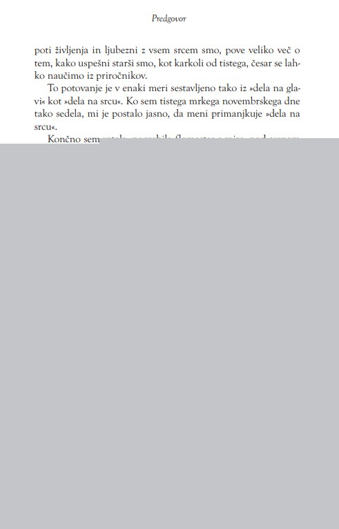 Sprejemanje svoje zgodbe je težko, vendar niti malo tako težko, kot če življenje preživimo na begu pred njo. Sprejemanje svoje ranljivosti je tvegano, vendar niti malo tako nevarno, kot če obupamo nad ljubeznijo in pripadnostjo in veseljem – izkušnjami, v katerih smo najbolj ranljivi. Le če smo dovolj pogumni, da raziskujemo svojo tčmo, bomo odkrili neskončno moč svoje luči.
