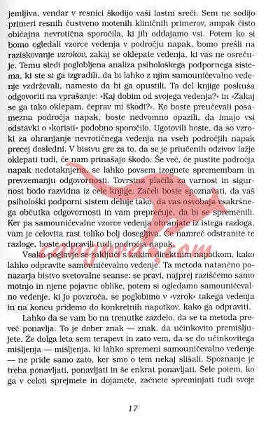 Predstavljeni so njeni značilni vzorci in izvori ter podporni sistem, s katerim jih običajno vzdržujemo, osrednji del pa obsegajo praktične smernice, kako lahko nekonstruktivno obnašanje in vzorce odpravimo.