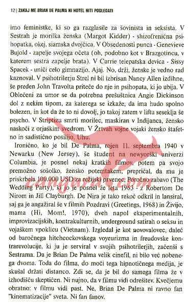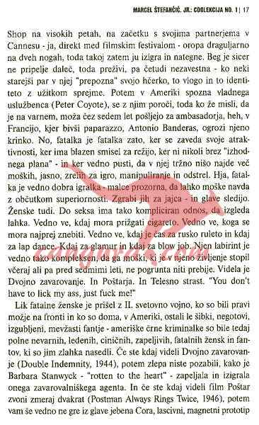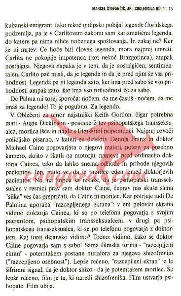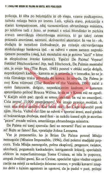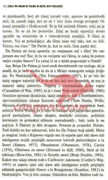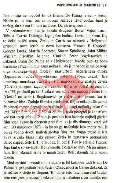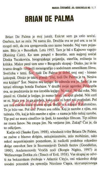 Knjiga se začne z anekdoto, kako Brian De Palma avtorja ni hotel nito pogledati, v nadaljevanju pa razkrije, zakaj je bilo temu tako. Sicer je coolecija no. 1 zbirkaigrivih esejev o nekaterih največjih režiserjih in igralcih. Kot večina drugih avtorjevih knjig se bere kot roman, čeprav namesto fikcije vsebuje zbirko anekdot, življenjepisov in portreov…