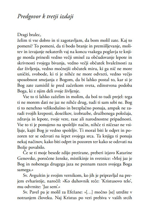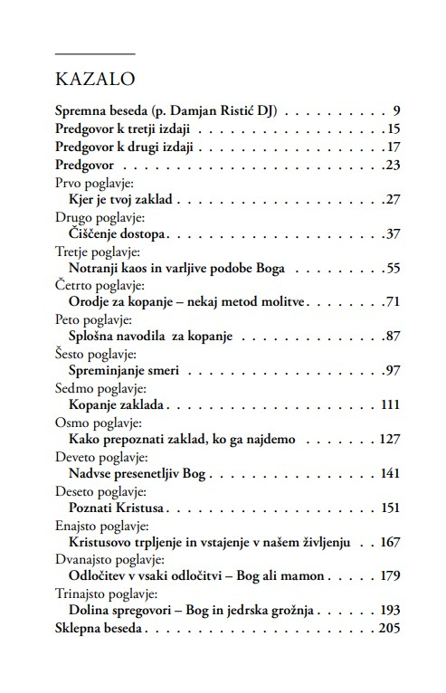 Iskati moramo globoko v sebi in to notranje potovanje močno vpliva na naše življenje, na odnose, vrednote in tudi na spremembe v družbi. Bog je v vseh stvareh in v stvarstvu ni nobenega delca, nobene človekove izkušnje, kjer ne bi bil z nami. A to ni le knjiga o zakladu, je tudi zaklad sama v sebi – je eno najbolj uspešnih duhovnih del zadnjih desetletij, prevedeno v več kot dvajset jezikov.