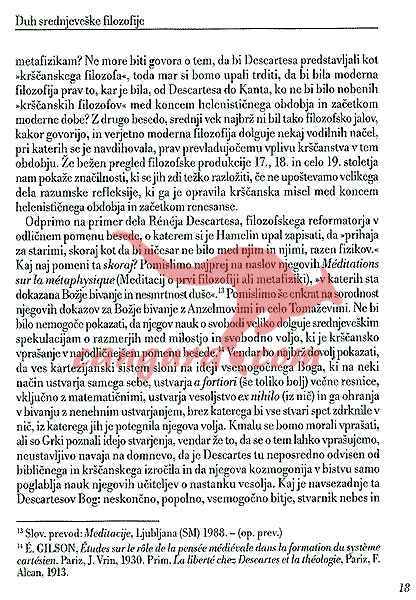 Z njim je med drugim ovrgel razsvetljenski predsodek, da se med Platonom in Descartesom, med antiko in novim vekom ni zgodilo nič filozofsko pomembnega.˝ Z njim je pokazal,˝kako je srednjeveška krščanska misel vsrkala grško filozofijo, a je ob tem postala nekaj bistveno drugega kot le komentar antike.˝…