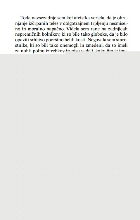 Tudi svoje pričevanje o poti spreobračanja je zapisala v živem poetičnem jeziku, a zelo iskreno in prepričljivo. Potem, ko je svoje srce odprla Kristusu, je v novi luči uzrla izkušnje iz lastne preteklosti – očetovo smrt, delo medicinske sestre v psihiatrični bolnišnici, samska leta v Londonu, pa tudi izzive zakonske zveze in materinstva ter življenje v tuji državi.