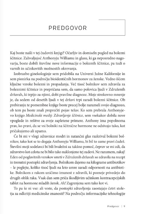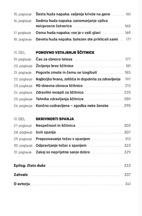 Ščitnica je nova vroča tema v zdravstvu. Od dojenčkov, otrok, najstnikov, staršev do starih staršev, vse več ljudi – še posebej žensk – spoznava, da je ščitnica kriva za njihovo omotico, pridobivanje teže, možgansko meglo, težave s spominom, mravljinčenje in otopelost, nespečnost, izgubo las, vročinske valove, občutljivost na mraz, zaprtje, napihnjenost, anksioznost, depresijo, močno bitje srca, izgubo libida, sindrom nemirnih nog, fibromialgijo in še več. Vsi želimo vedeti, kako se osvoboditi pasti nepravilnega delovanja ščitnice.