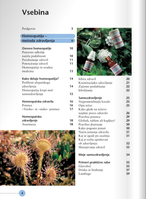 Homeopatska zdravila nimajo stranskih učinkov, so mnogo cenejša od klasičnih zdravil in primerna za staro in mlado. Pričujoči priročnik vam ponuja podrobna navodila za homeopatsko samozdravljenje številnih vsakodnevnih tegob in pomoč pri iskanju učinkovitih zdravil.