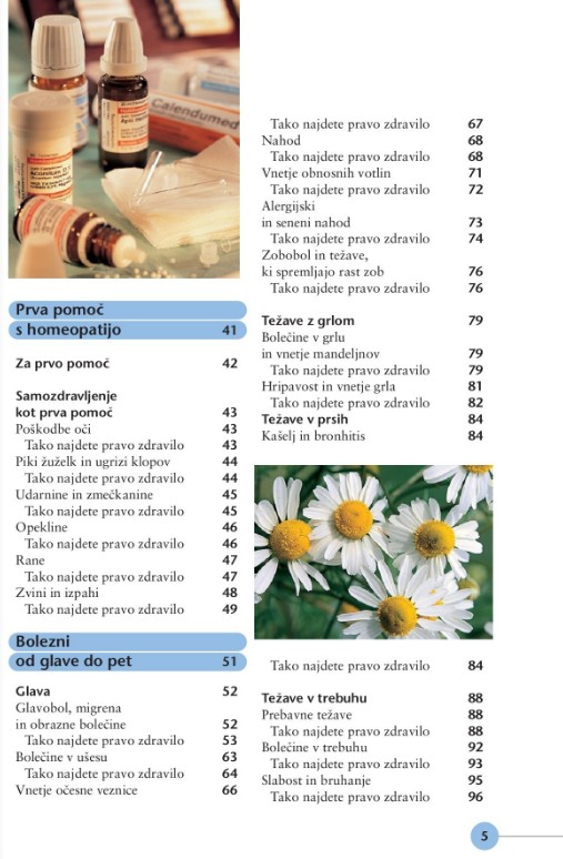 - Poglavja o prvi pomoči, boleznih od glave do pet, motnjah splošnega počutja in otroških boleznih s preglednimi opisi simptomov vam omogočajo, da hitro in zanesljivo izberete ustrezno homeopatsko zdravilo.